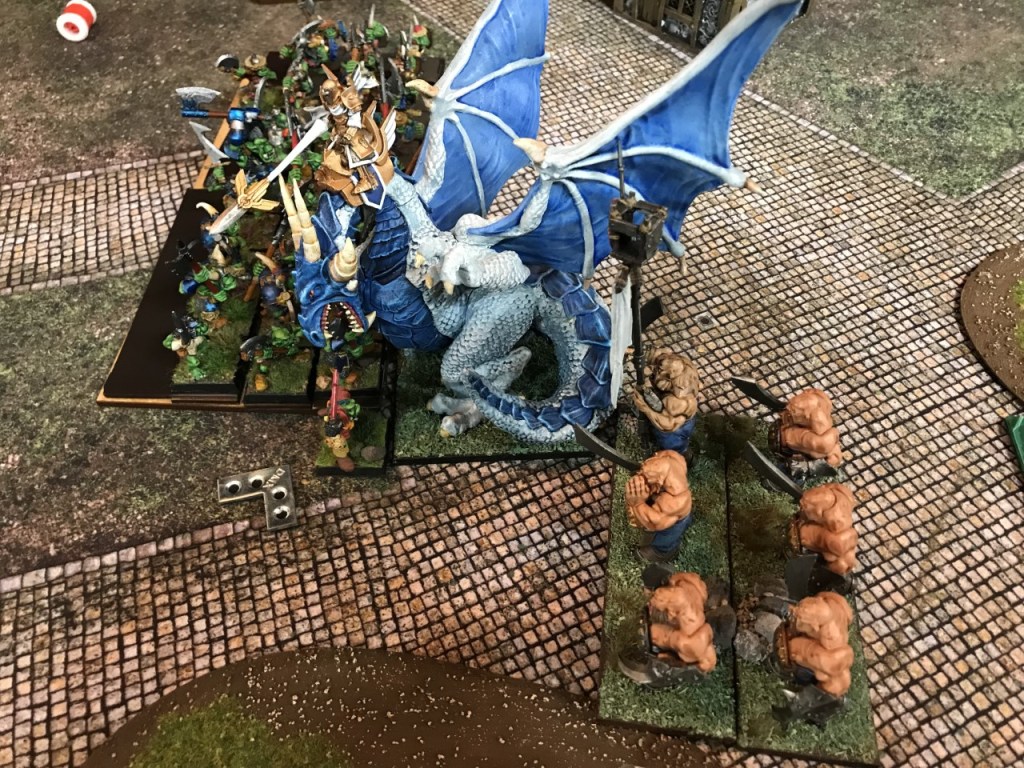The Elohi and the Dragon between them created so much of a problem the Elf line eventually started to break up in an attempt to ward off multiple charges from different angles, which ultimately led to their downfall and a three, nil win to Basilea.