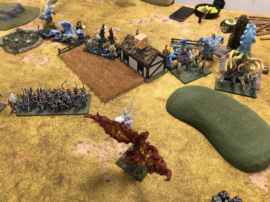 This week I’ve managed to sneak in 2 games and I’m feeling pretty damn smug about it! On Tuesday I took a Basilean force, consisting of predominantly foot troops, into battle against the Trident Realms. It was a really close fought game and the Basileans just about claimed the day. My spear horde had a good run, taking a Coral Giant and horde of Water Elementals off the table, before bringing their unit strength in to claim the dominate circle. The stars of the show though were the three regiments of Sisterhood Scouts. Very much cast in the Gladestalker mould these ladies saw off a regiment of Tidal Swarm, a horde of Water Elementals, a Thuul Mythican, and harassed a Coral Giant. What’s more two regiments survived to tell the tale.