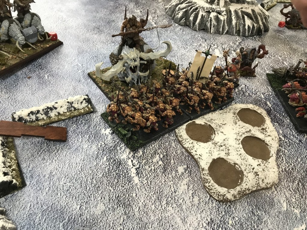 The Orcs continued to press forward, and then happily for me, Thonaar and the Thunderseers peeled off to my right to deal with the Hackpaws, which would take them out of the main fighting for the rest of the game.