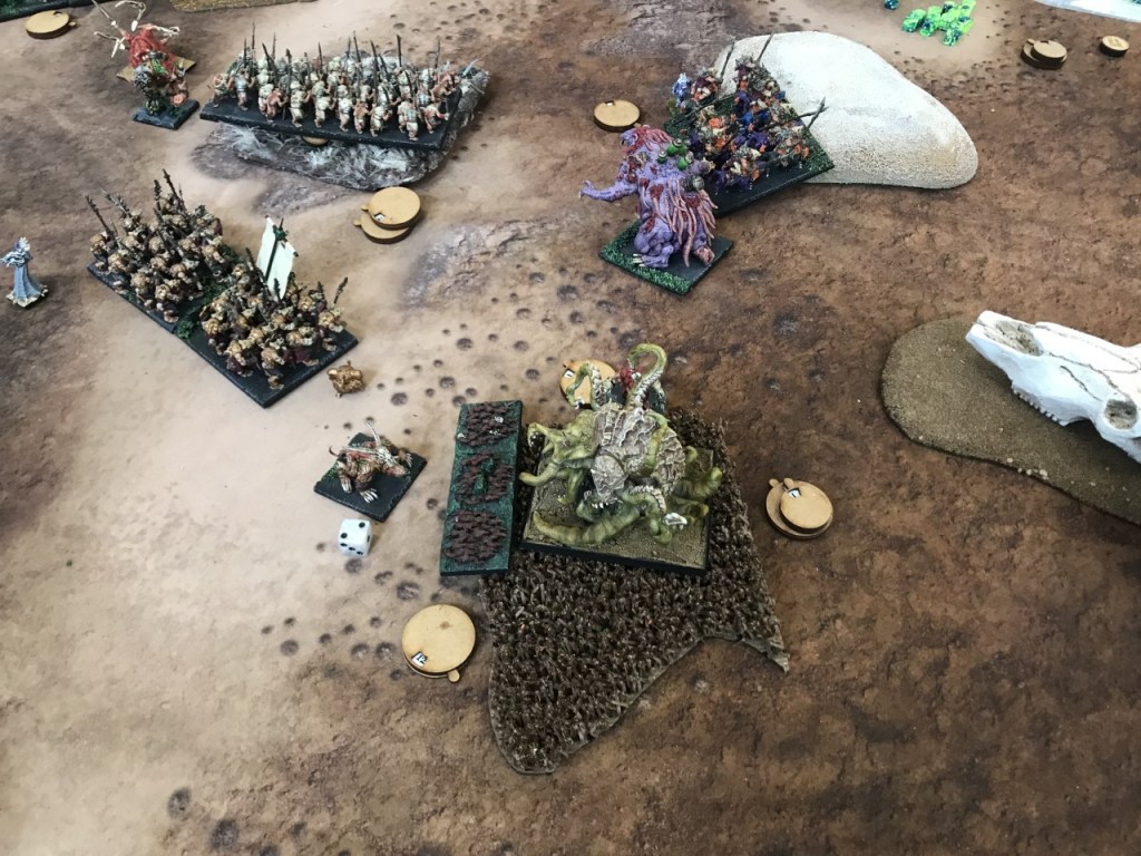 To a certain extent, you just have to suck it up. However, against this type of army the Mutant Rat Fiend really came into its own, munching though regiments and regenerating damage. Despite taking damage pretty much every turn, it never got beyond about 5 wounds.