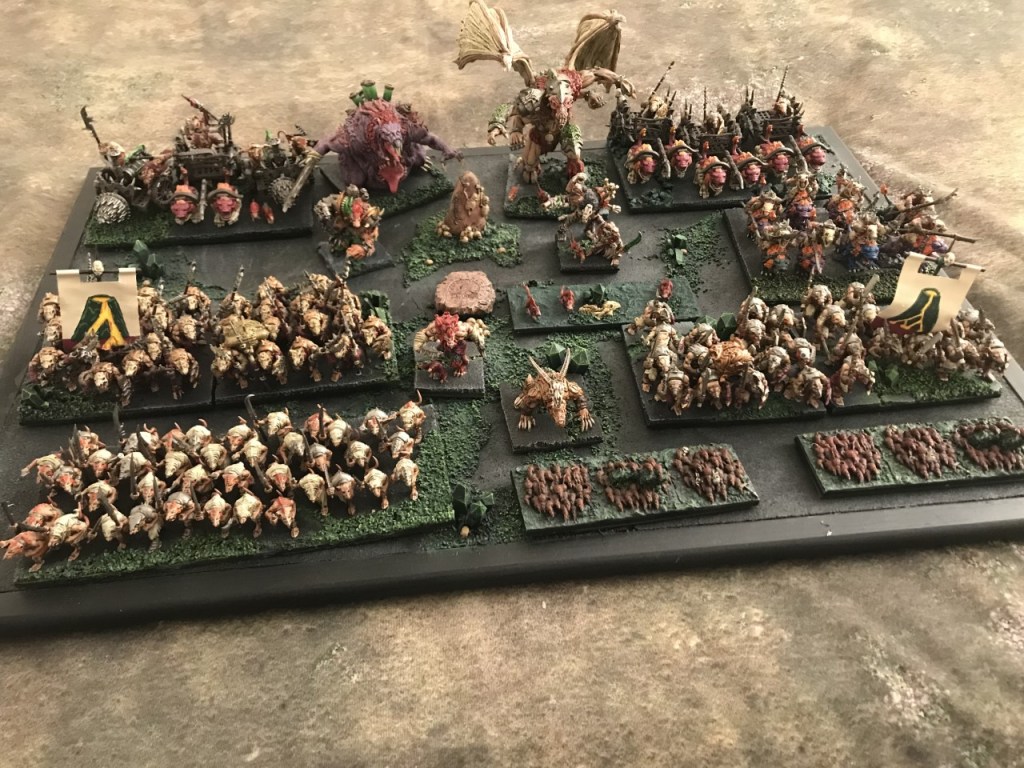 All in all, the plan was working. Helpfully my opponent held back his horde of Braves on my left flank until the final turns of the game, which took the pressure off my units in the centre but did mean they were able to walk almost unopposed onto one of the objectives, whilst the Forest Trolls took the objective on the other side of the board. That meant coming into turn 6 the Halflings were holding 2 VPs and I had one of the zones that would allow me 2 VPs. As a result, it all came down to the final zone which was worth 3 VPs. The only scoring unit the Halflings had in it was the Iron Beast, however, the centre had become something of a log jam throughout the game and that meant there was only 1 scoring unit I could move in to contest the zone and neutralise the Iron Beast’s unit strength. That made the game a draw, and a win for me could only come about from one shotting the unharmed, defence 6 Iron Beast with the Sharpness Tunnel Runners and Cryza. Alas, it was not to be, and so the game ended in a draw.