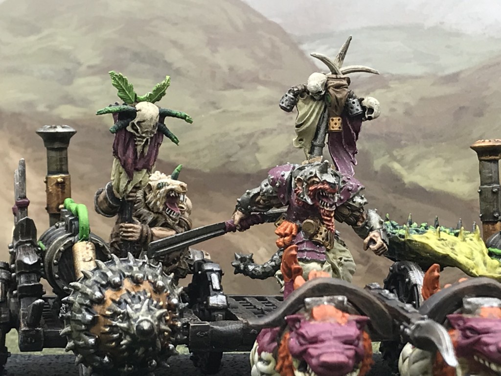 My Ratkin army has a growing narrative behind it. Earlier in the year a very enjoyable game against Orcs led to the matriarch of the clan being deposed and an ambitious Birthing Daughter taking her place. This change has resulted in a lot of decisions having to be taken both in story terms, what will her reign look like, and game terms, what model should represent her and what stat line should she have.