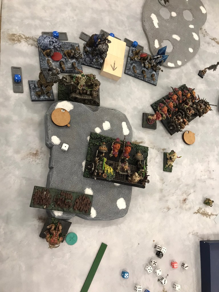 I spent a bit time talking through the scenario with my opponent afterwards, and whilst it is a really interesting concept we felt it wasn’t as balanced as it could have been, and gave a massive advantage to the player taking the first turn. I also believe that the composition of our armies made the scenario even more challenging. This is because we both has fast units that could claim counters from the first turn, we then had units perfectly suited to blocking the loot counter carriers on their journeys to the scoring zone. In addition to this neither of us had flyers or long-range shooting, which limited the opportunities to take out the counter carriers. The game certainly felt quite one sided from about turn three, so whilst it was a win a bit more consideration to get the scenario to a really good place would make it more fun. I would love to see a future iteration of this at another event.