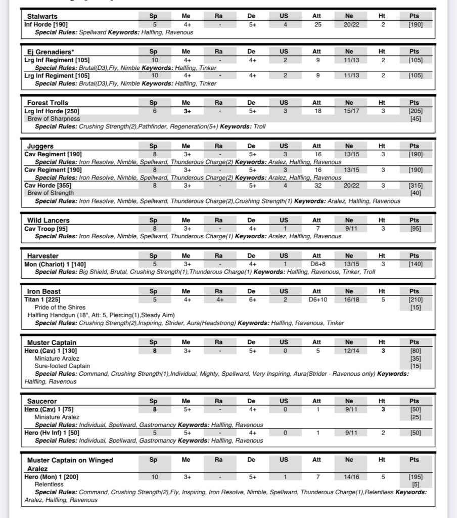 I have to admit I was really impressed with the army overall. Although I finished with two losses and a win, the losses were what I would call good losses, and as a result I ended up coming in a respectable 25th. Despite my misgivings the horde did very well and I’m pretty sure timing is everything when it comes to deciding when to finally commit with it. My main concern about the Halflings was their low nerve, which was one of the reasons for choosing the horde, but it didn’t impact me as much as I thought it would. What was very noticeable was just how useful the terrain mitigation in the army was with strider and the trolls.