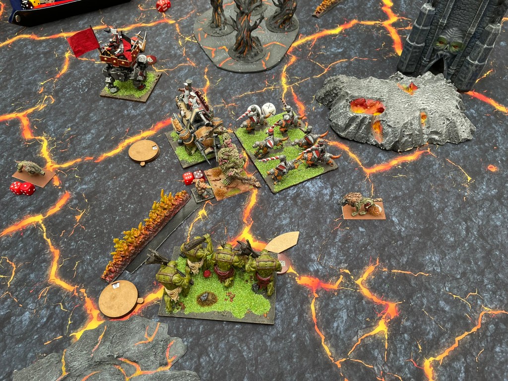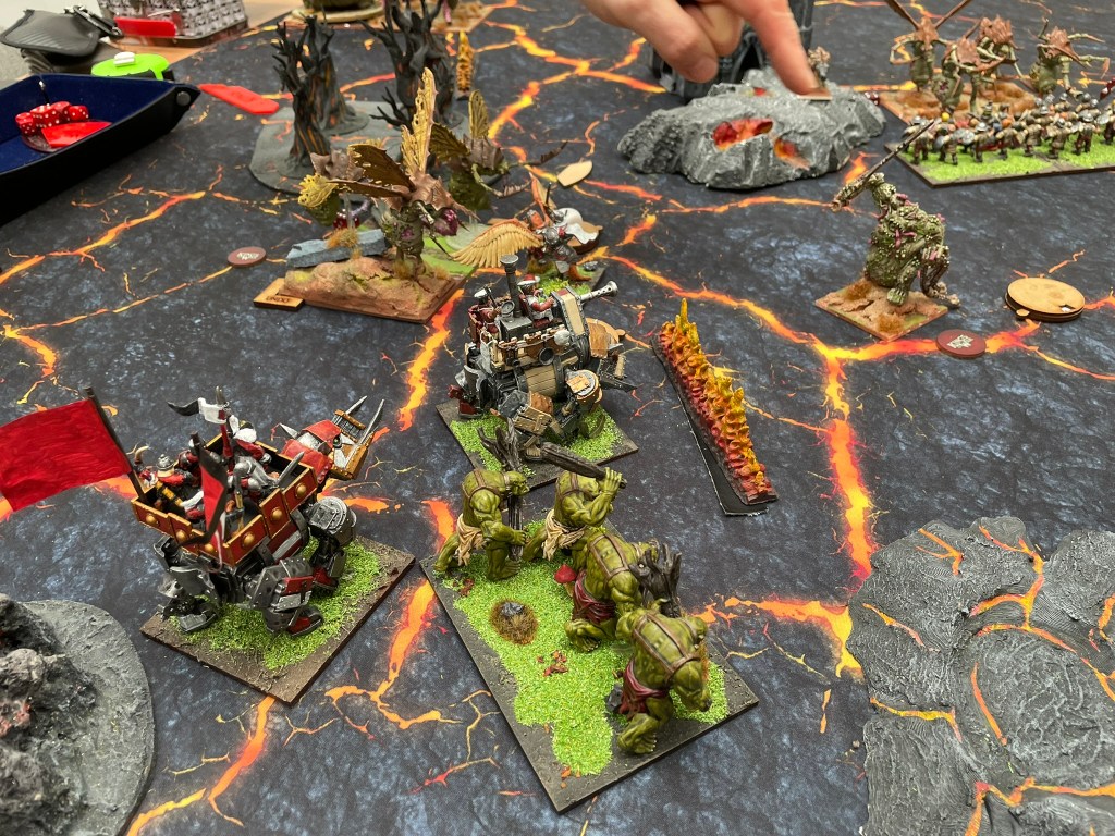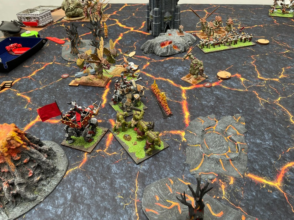 The first scenario was Compass Points. I was more than a little concerned about this match up because of how fast everything was in my opponent’s list. It’s the sort of list that punishes mistakes quickly and terminally. In addition to this there was a bit of a mismatch in terms of styles that felt, in my opinion, more in my opponent’s favour. Halfings are great at delivering loads of chip damage and taking things off over a period of time. The Forces of the Abyss have loads of regeneration and each of the main units could potentially remove each of my units in one shot. Add to that the Well of Soul’s ability to also remove damage for injured units, I knew I had to do my best to get multi charges and remove units quickly. Brain power was going to be required.