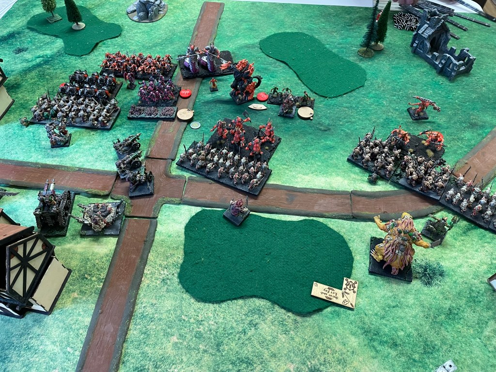 A couple of times I noticed the healing in the army really shone through, with the Brood Mother’s Drain Life bringing the central spear horde back from the brink of destruction. As the battle raged on the army swept towards the centre, flooding it with vermin, and pushing the Abyssals back. When the fighting ended it became apparent that the rats had passed the test with just two hundred and twenty-five points leaving the table, compared to the massive losses sustained by the demons. It was quite an interesting outcome.