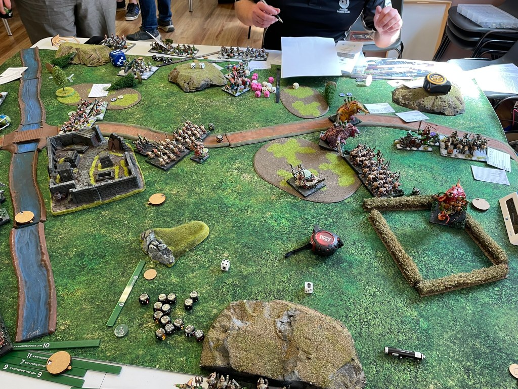 For a game that I had gone into thinking I was the underdog, it had ended up being incredibly close. With the benefit of hindsight I think I could have played much better, sending the giant and war engines forward first, followed by the characters and the infantry hordes to sit in the scoring zone, forcing the Dwarfs to come to me. I would like to think that things might have turned out a little differently. However, one of the joys of this game was facing a situation I had never faced before with an army list that I’m still getting my head around.