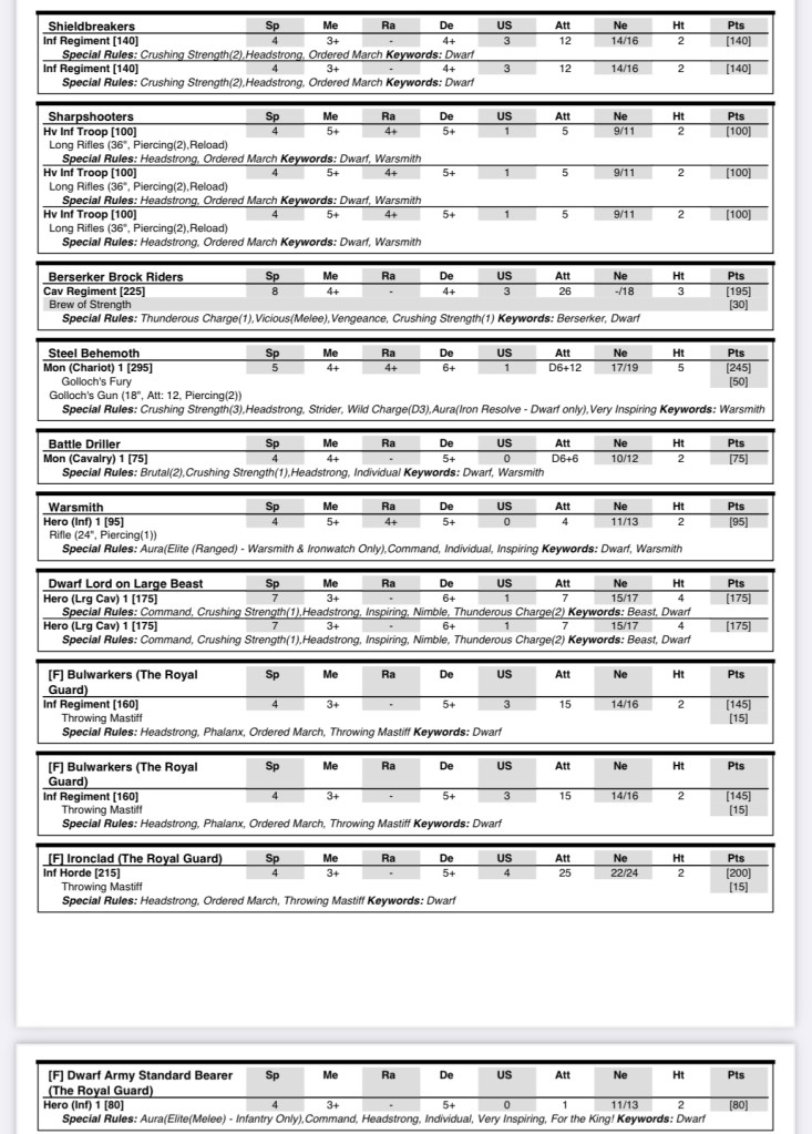 Dwarf armies these days seem to be delivered in a pretty standard package. There’s the formation, Golloch’s Fury, two Lords on Beasts, two infantry regiments (to taste), a brock regiment with a magic item, and some shooting of some type. On the plus side it means you know what you’re getting yourself into, on the not so plus side you also know what you’re getting yourself into.