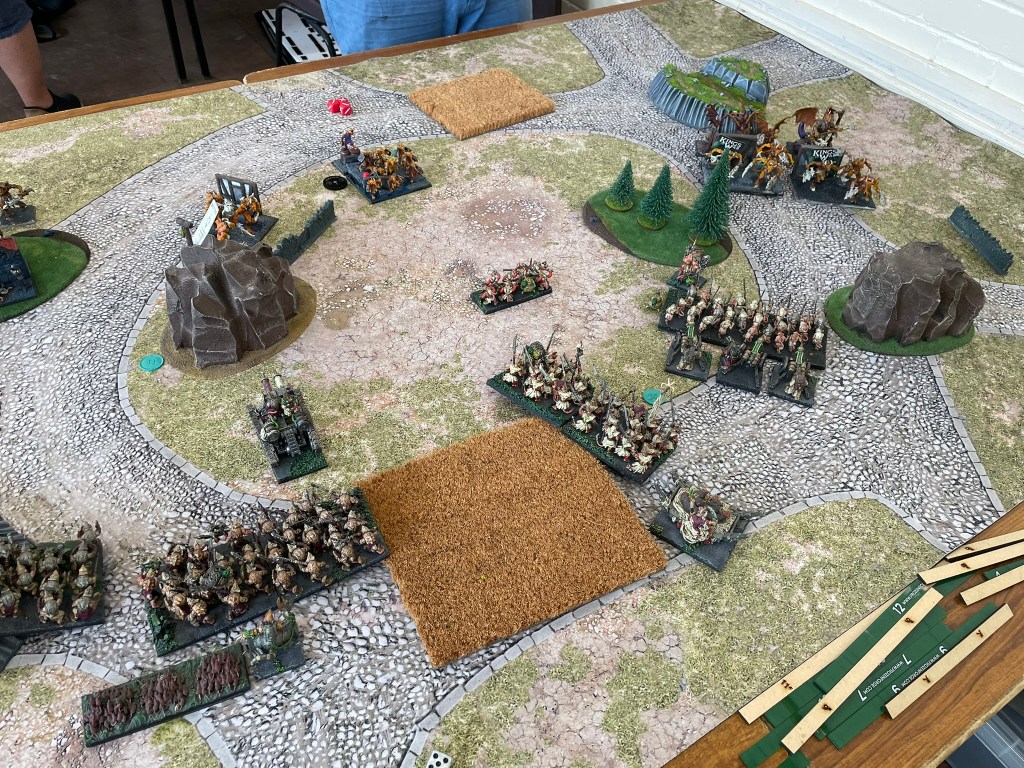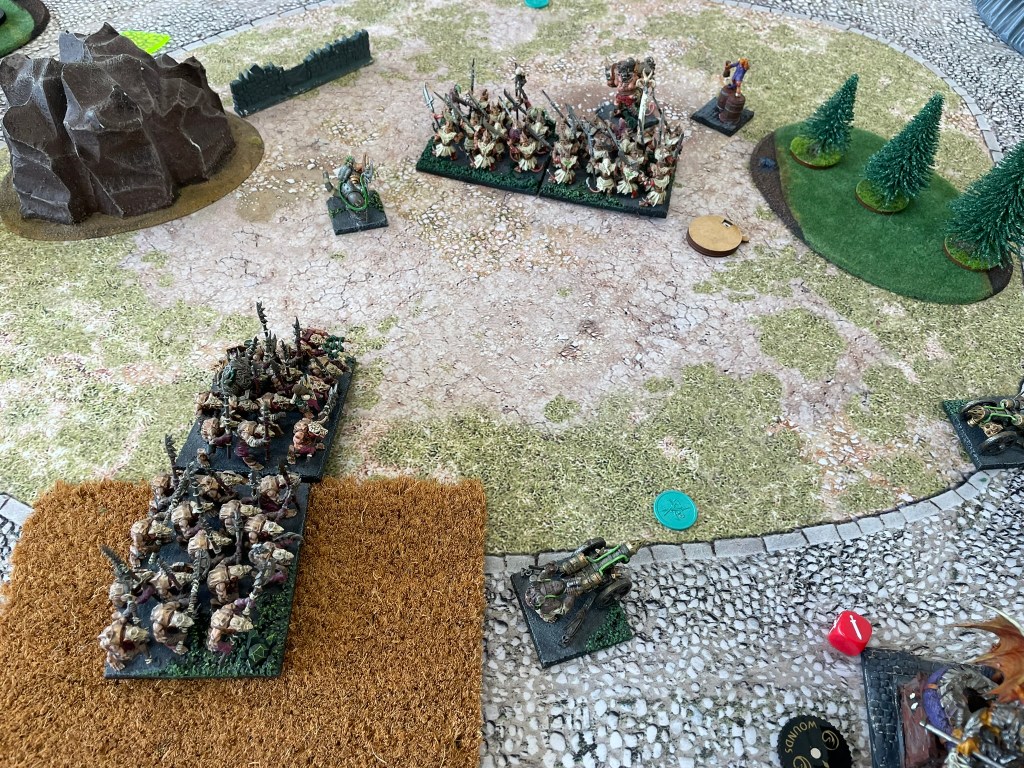 The changes weren’t drastic, one of the Mutant Rat Fiends was dropped, a spear horde got promoted to shock troops and a troop of scurriers was recruited. The scurriers were the experiment for this event. I was hoping the large amount of rallying in the army would keep them reasonably alive and their shooting would nicely support the war engine teams.
