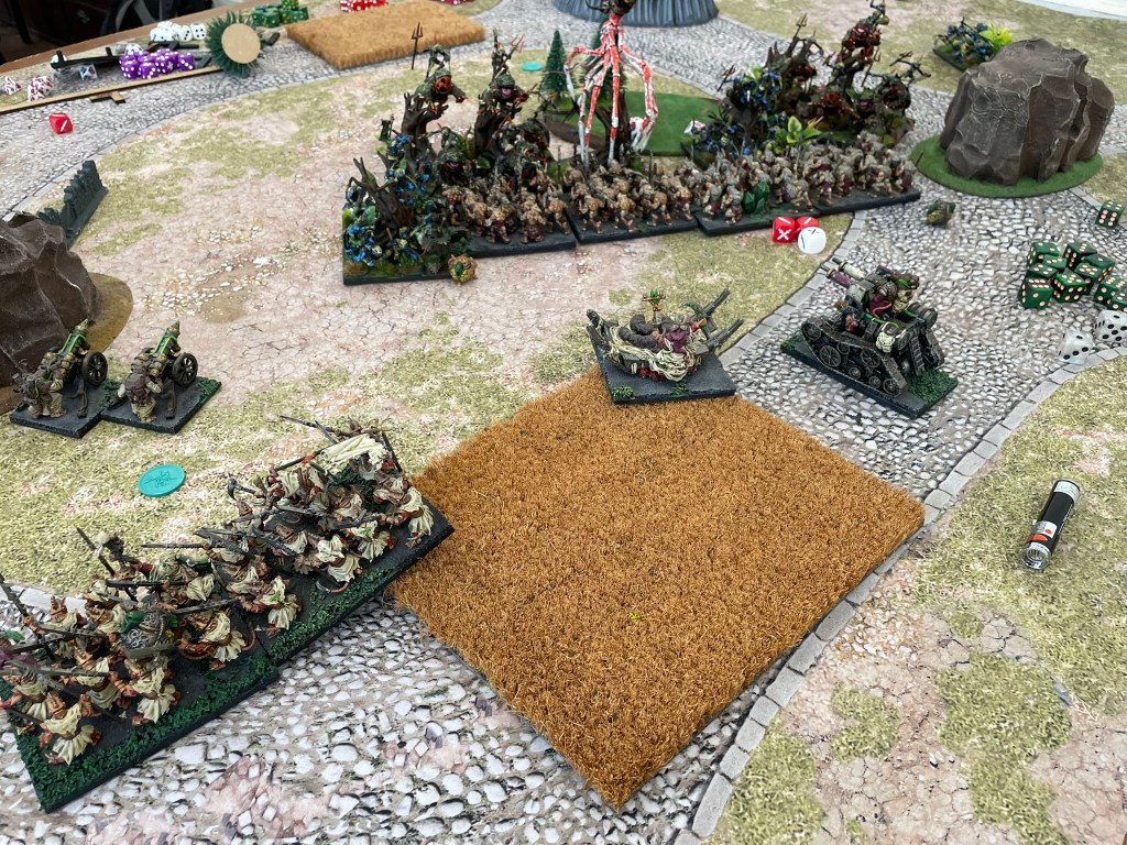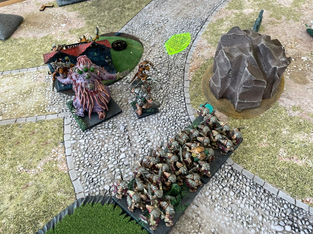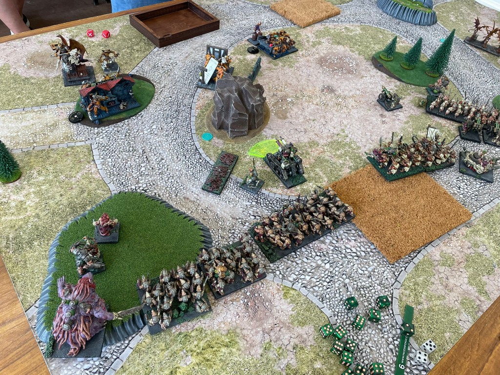 The death spewer has to be the most interesting thing in it and I’m not really quite sure what it’s great at, but it seems to contribute in every game, just never in the way I want it to, or think it should. It’s definitely staying. I think there’s about 200 points now that I’m not sure about, but to be fair I think that’s quite exciting in it’s own way as it gives me opportunities to throw some different things into the mix. At the moment I’m torn between a couple of hackpaw troops and a couple of spear regiments. Hey ho, only time will tell…