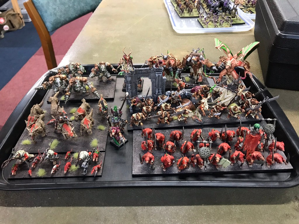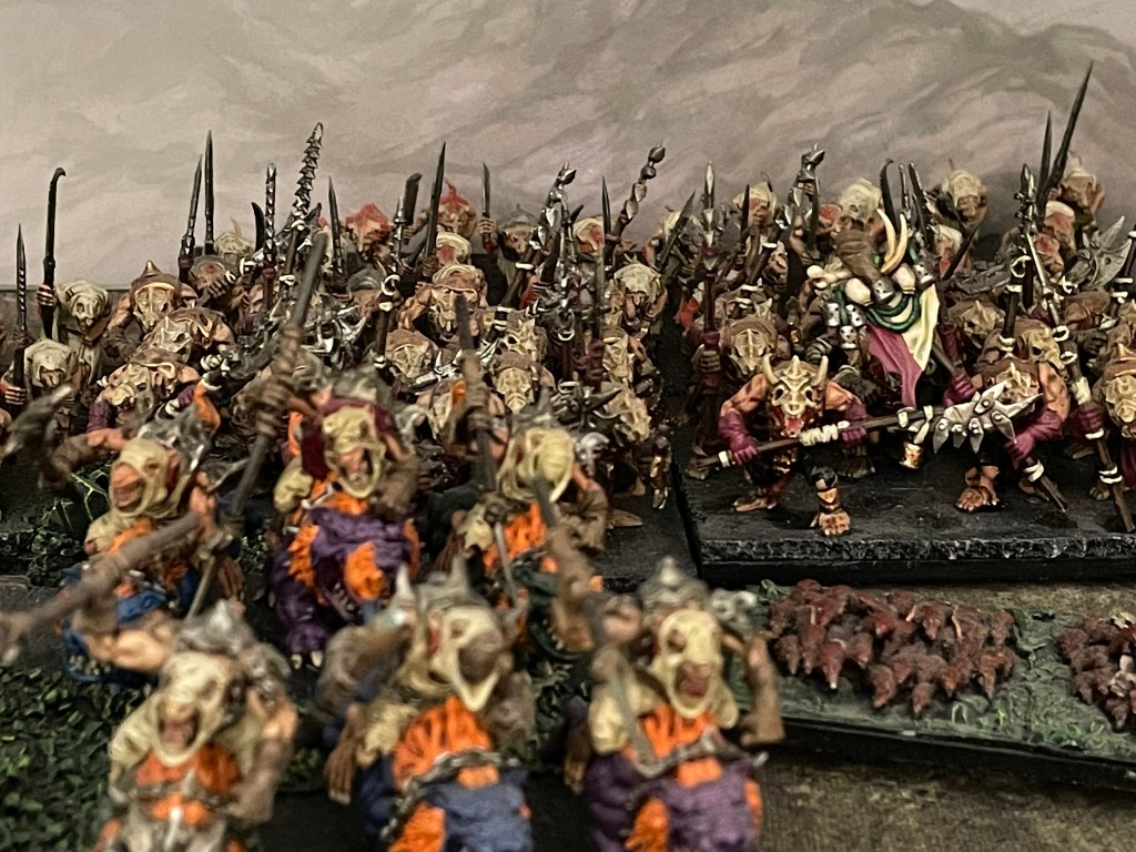 As a result the revamped list has seen some changes just by virtue of moving through editions, but I also wanted to make a couple of further tweaks, one in the name of functionality and one in the name of fun. Whilst I think Nightmares are a solid unit, they just don’t seem to work for me, so I decided to replace them with more spear warriors. This is the one change I feel there’s lots of arguments for and against, and I think only time will tell, but the other benefit of this is that it freed up points for fun things like plague pots on the Hackpaws. The final change was to swap out the Warlock for Twitch Keenear. I think Twitch is such a super fun character I couldn’t resist including him just in the spirit of the list. It has just struck me that losing the shooting from the Nightmares and the Warlock does change the army dynamics slightly, but I think there are plenty of other changes that will have had far bigger impacts. All this means the final list looks like this: