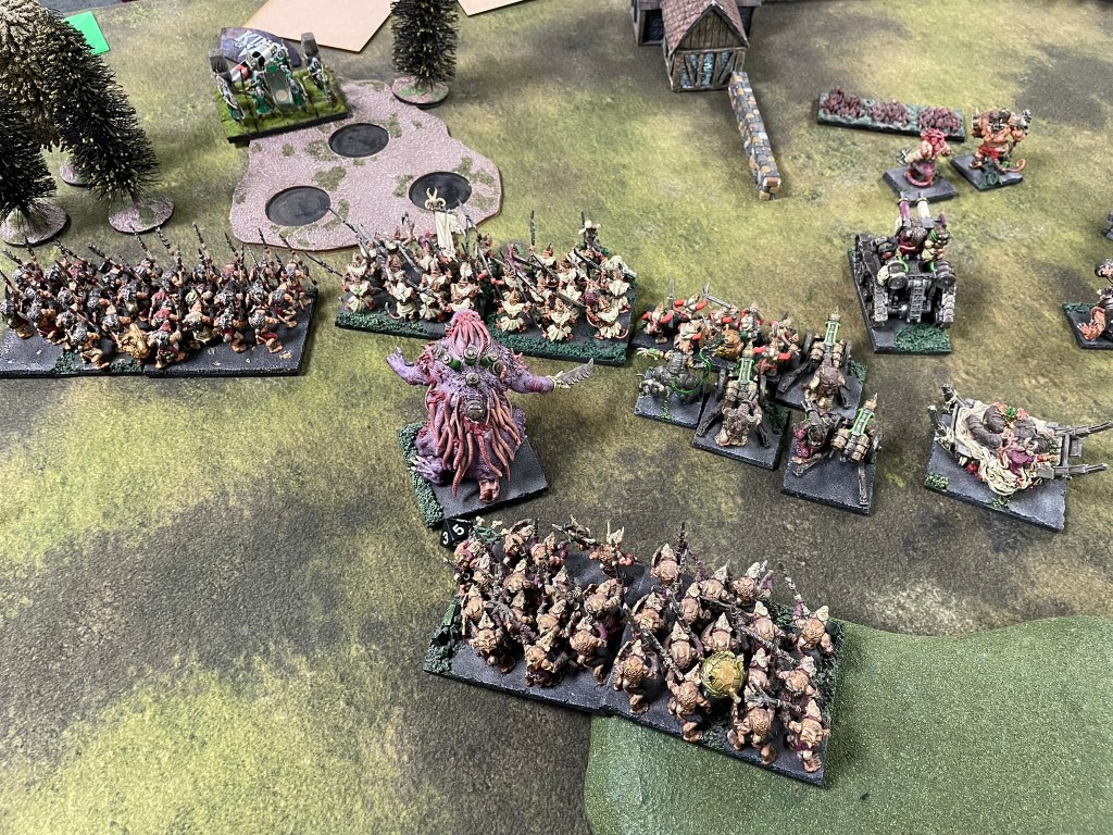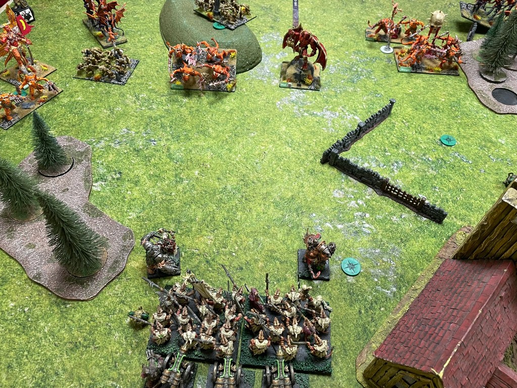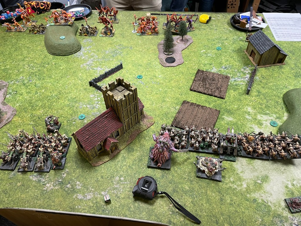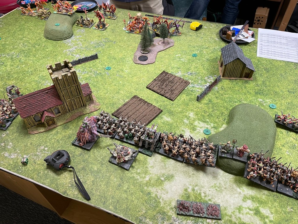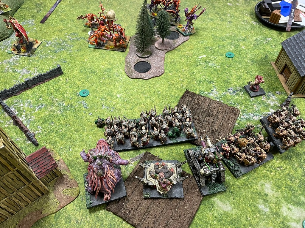 My final game of the day, and the edition, was against the cunning Jon Gunns and his menagerie of aberrations from the Abyss. I’ve played a couple of versions of this list (although not piloted by Jon) and know exactly how hard it can hit. It can clear out hordes of rats far too quickly, especially if the demons don’t get taken off quickly. Fortunately, the side of the table I ended up on had a reasonable amount of rough terrain, which is probably my best defence against this sort of army.