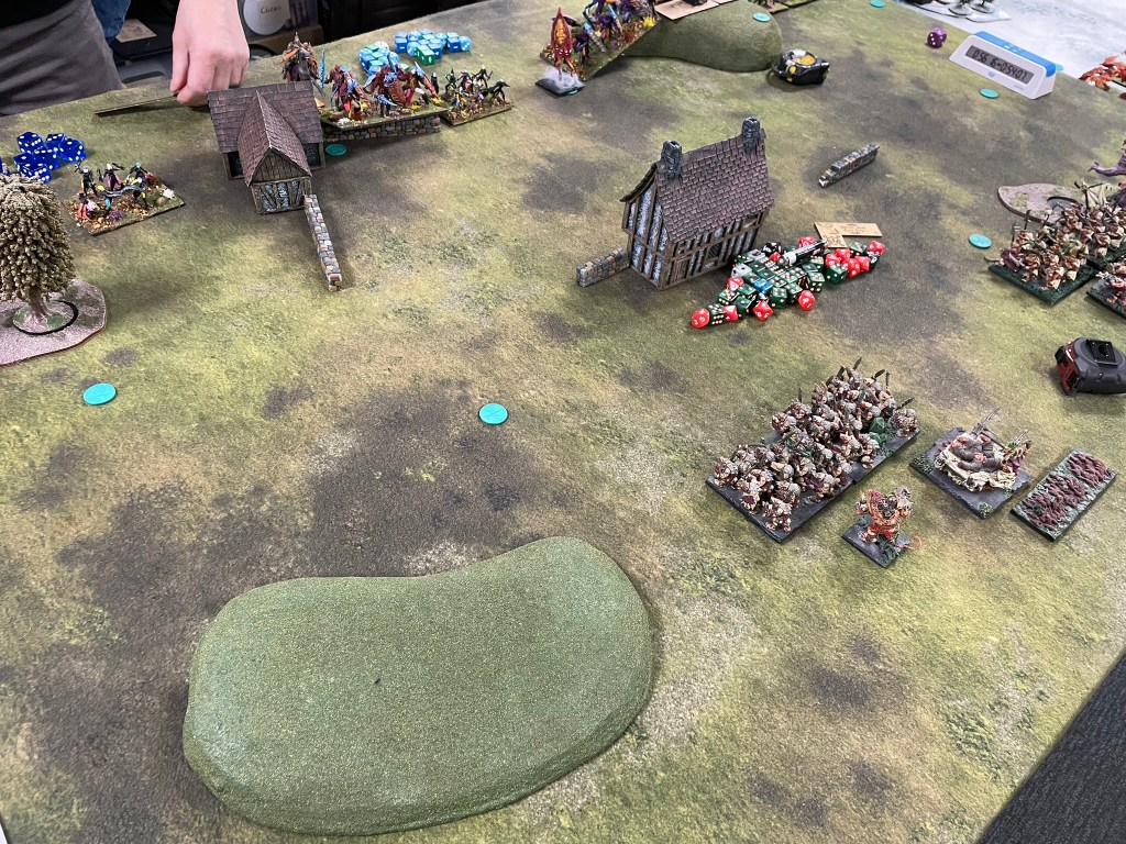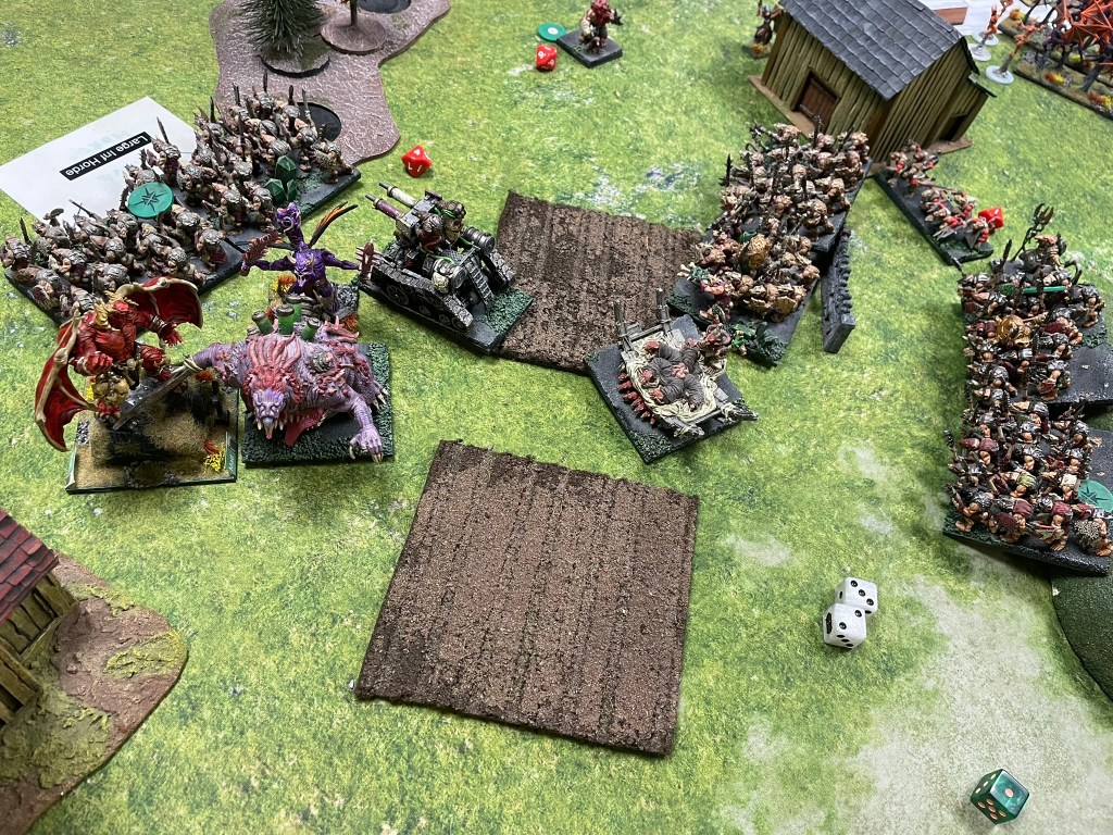 I took the same list I’ve used for most of this year it’s been that enjoyable. The one thing I did notice this time around was that it still included a white command dice, completely irrelevant now. There wasn’t much to be done with twenty points, so I added Sir Jesse’s Boots to one of my Shock Troop hordes (which I failed to use in the first two games as my elites were in the wrong places) and Fire Oil to my Scurriers (that actually managed to do one wound on a regenerating unit that I may have been far too excited about).