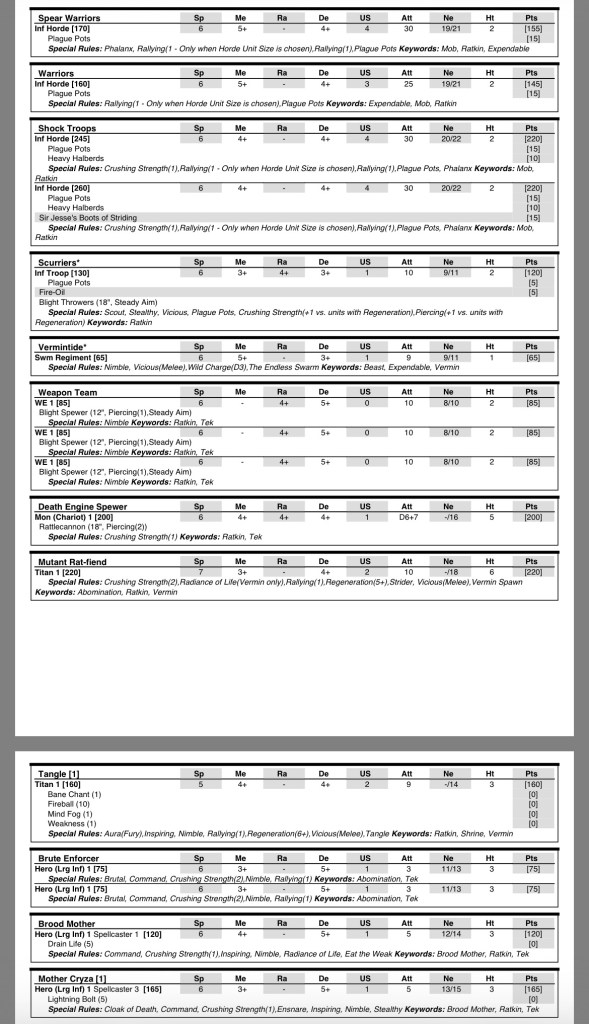 Playing this list has been really fun and through it I think I’ve found the sort of play style that works best for me. Having a mass of rats that push forward to claim objectives whilst around them nimble characters and war engine teams cause chaos has become the order of the day. I’m hoping it’s an approach I don’t have to change too much in the coming days.