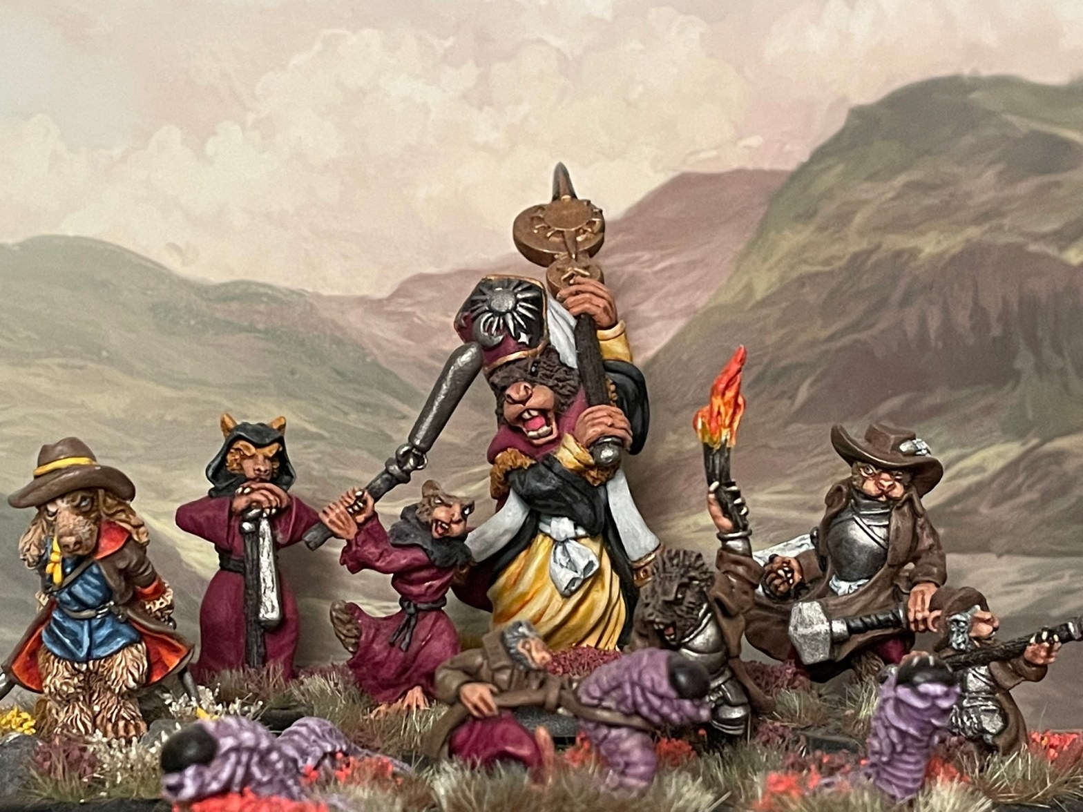 Originally seven creatures strong (a fox, an otter, a weasel, three mice and a sparrowhawk) they have added a mole and an attack grub to their brotherhood. Advances have seen the mouse magic user discover a hidden talent for fate magic, the weasel get faster and the sparrowhawk had an enchanting experience whilst out wandering and was blessed with no less than 5 fate points. On balance life has been good to my beasts.