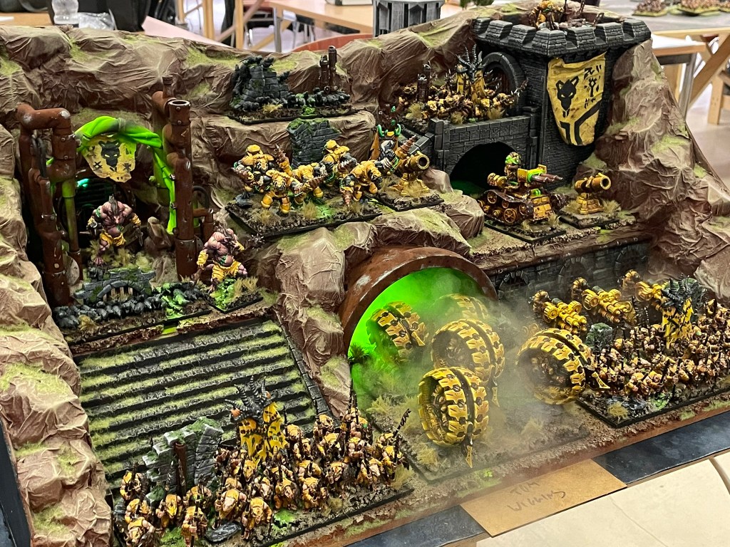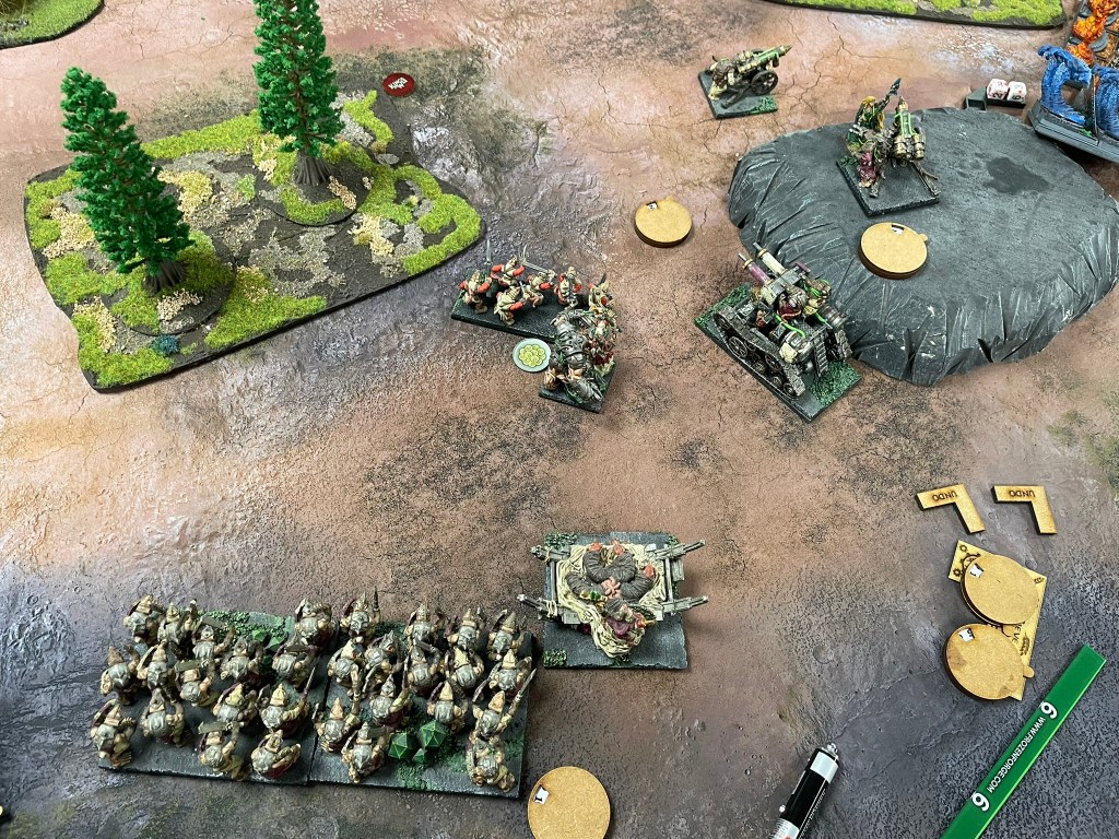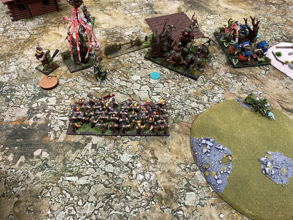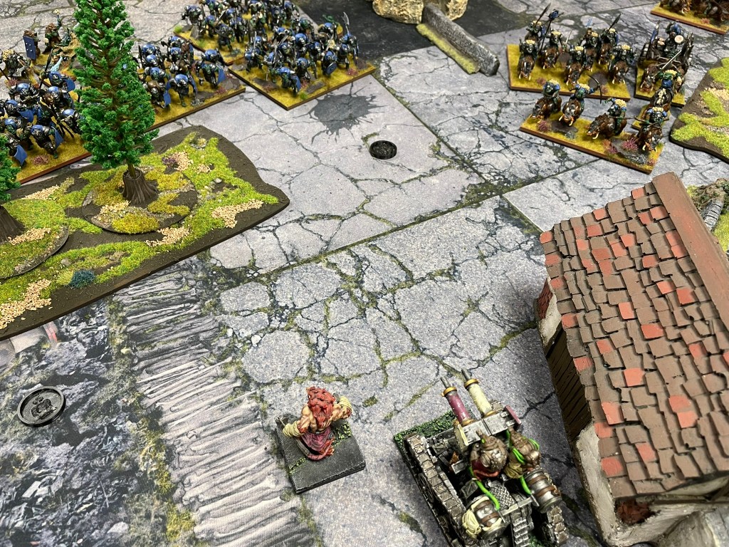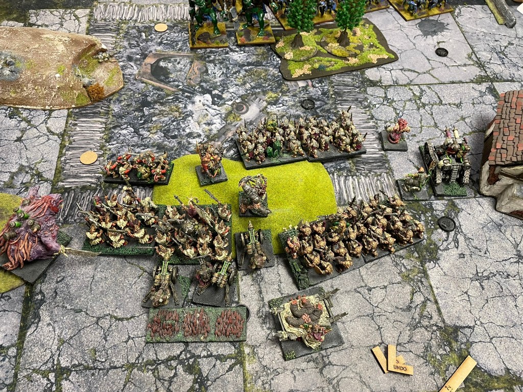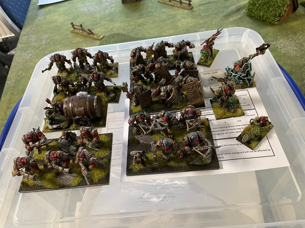 In the limited time I’d spent playing with the monster creator I hadn’t given much thought to the shooting options. I’d kind of assumed they would be limited to a bit of fireball or lightening bolt. Not the case. Chris (and a couple of the higher ranked players at the event) had created living artillery capable of delivery up to around 30 shots, with piercing 2, range 24” and the height of the titans meant they could pretty much shoot at whatever they wanted.