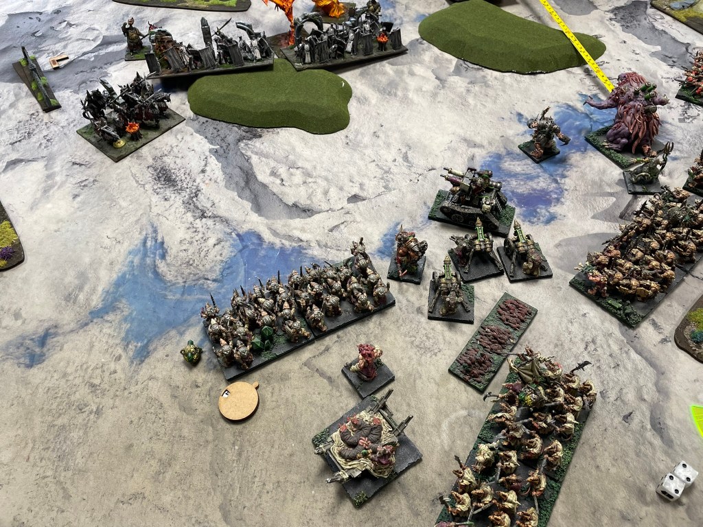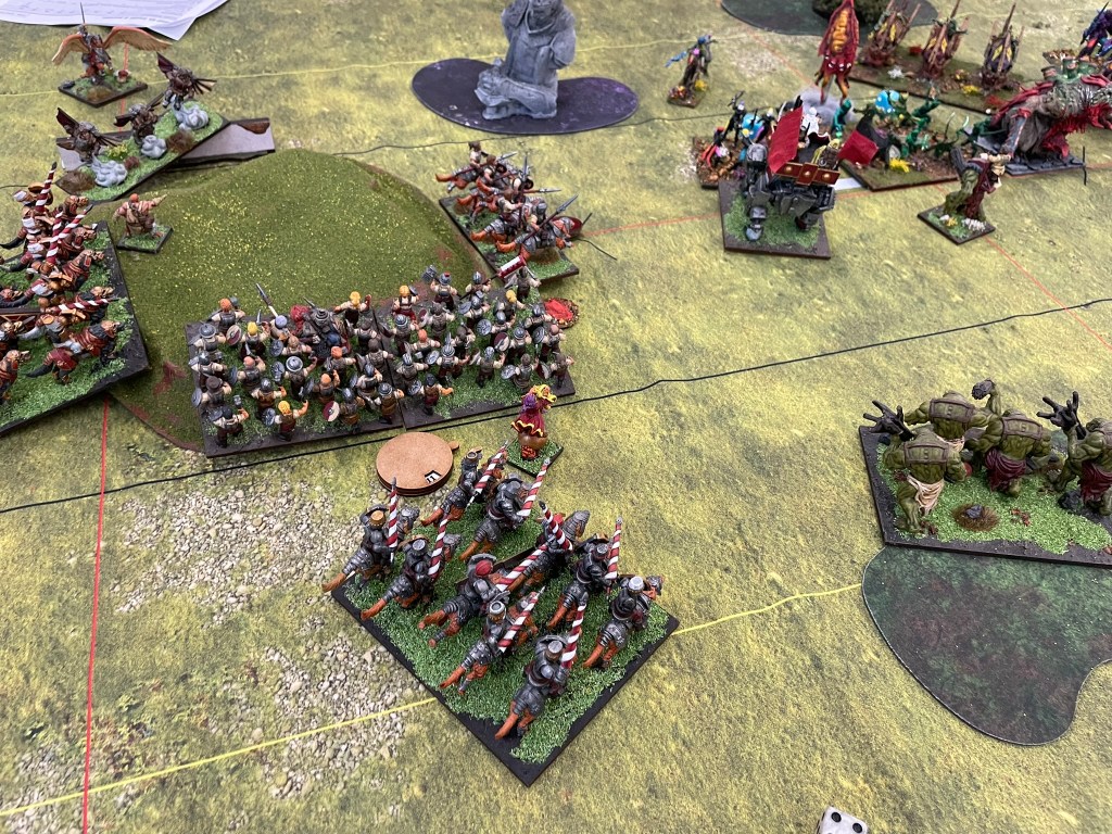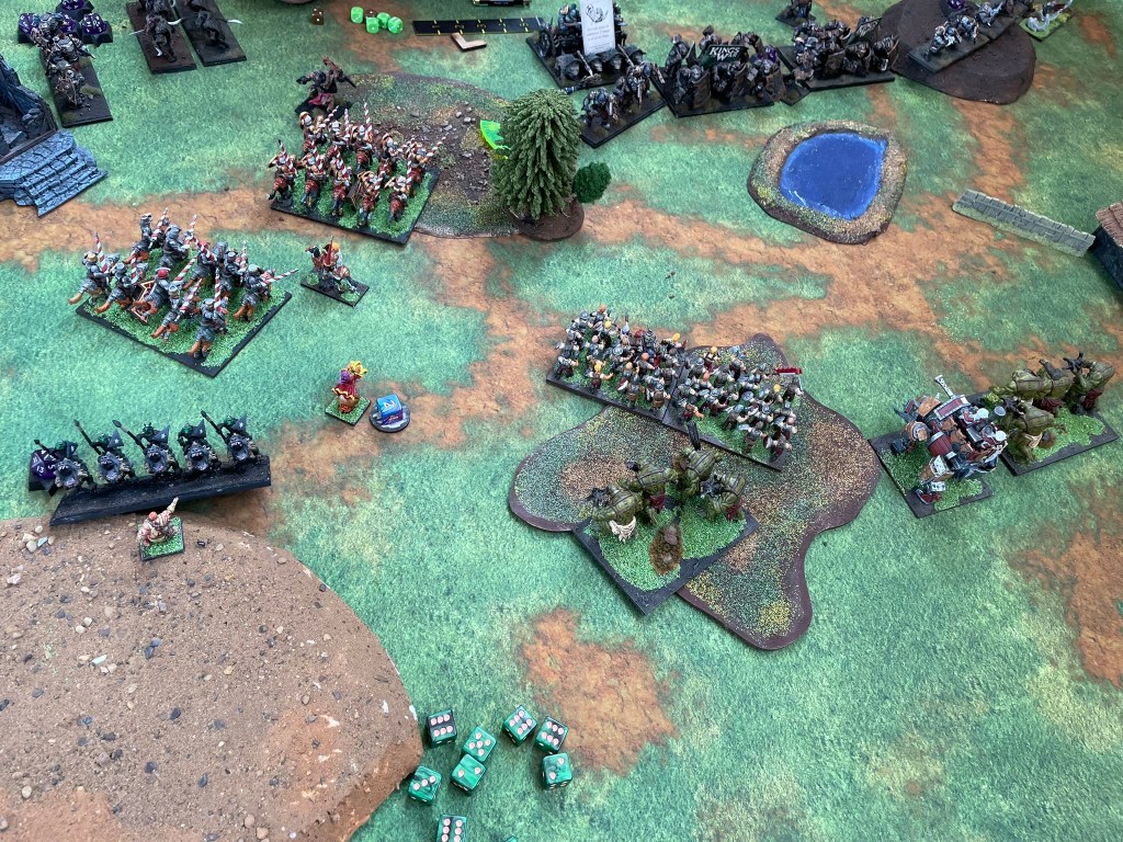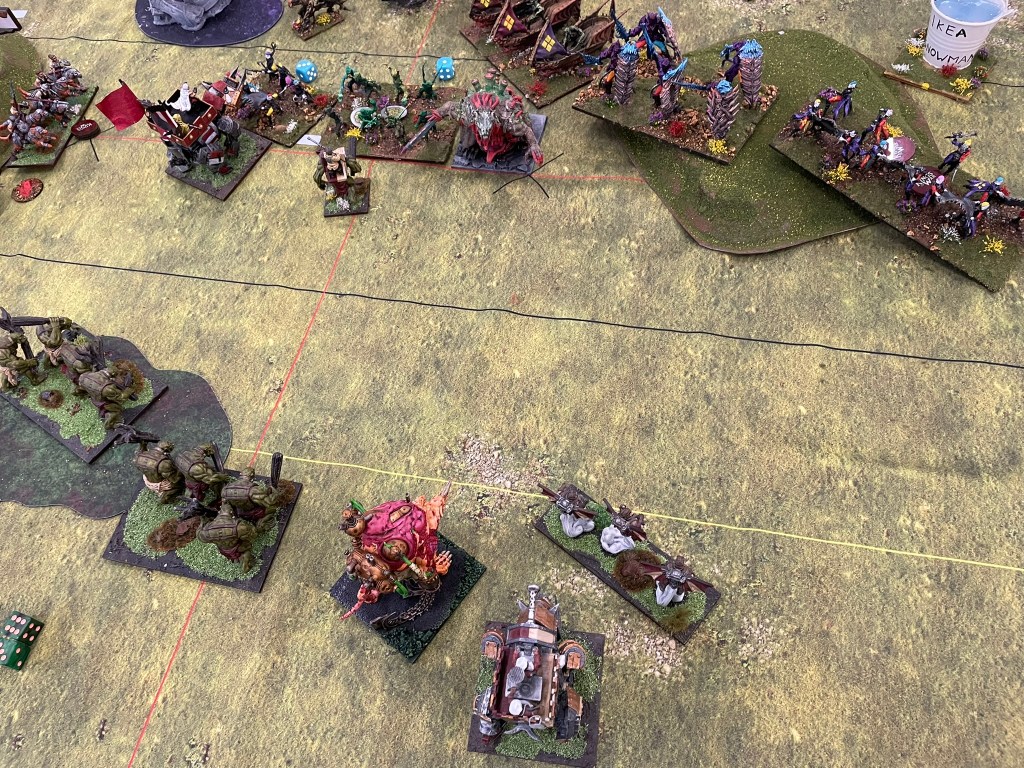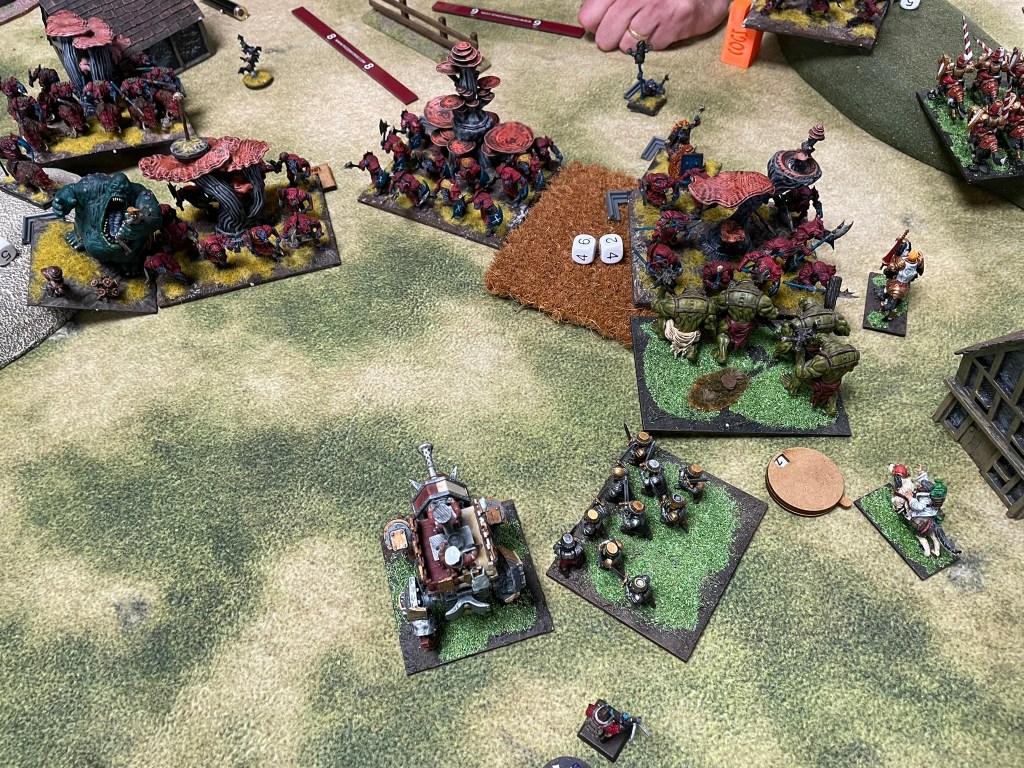 In the first half of the game the grenadiers, muster captains and Juggers played an absolute blinder, pulling apart the handful of units that sought to hinder their progress. However, if was a stunning flank charge from the Wild Lancers into the flank of an Impaler horde that one shotted the beasts that really exposed the elves’ proverbial tender bits. Not long after this the Halflings began gathering their first loot, before stealing another lot off the beleaguered Mutants, as the void pirates started to vanish from the table leaving the Halflings with a win.