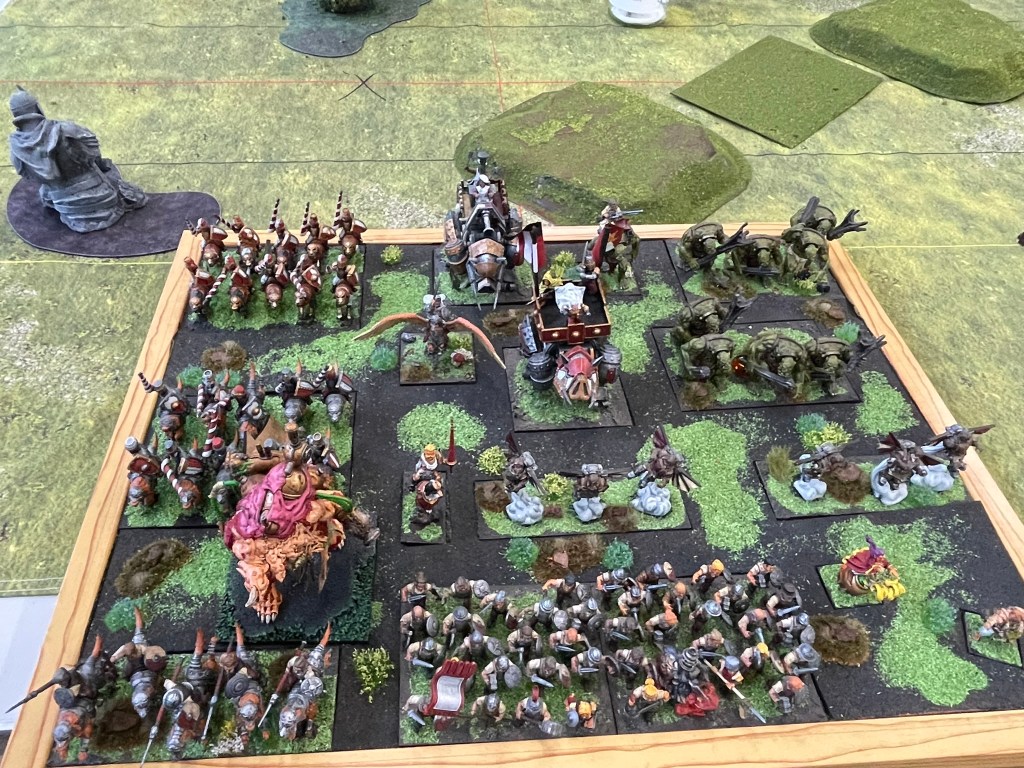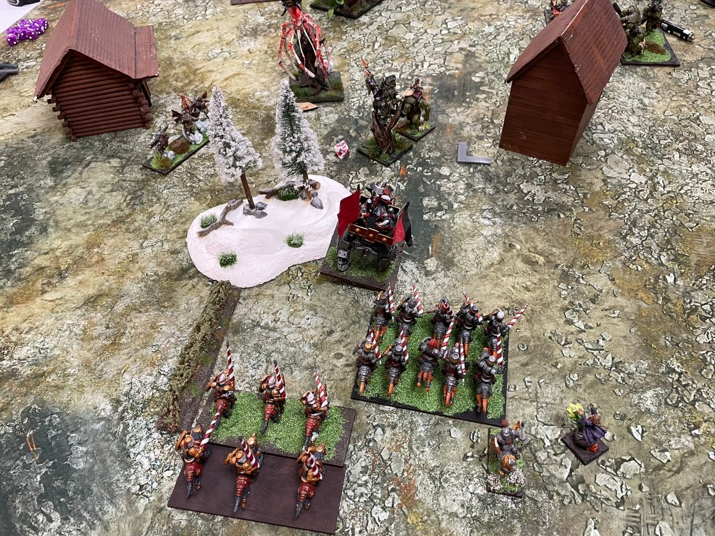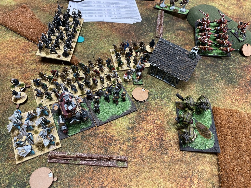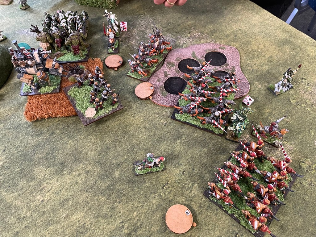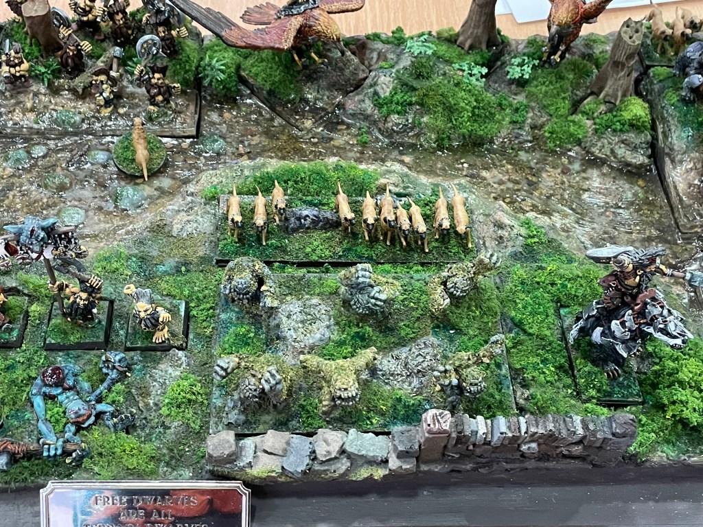 In the first half of the game the grenadiers, muster captains and Juggers played an absolute blinder, pulling apart the handful of units that sought to hinder their progress. However, if was a stunning flank charge from the Wild Lancers into the flank of an Impaler horde that one shotted the beasts that really exposed the elves’ proverbial tender bits. Not long after this the Halflings began gathering their first loot, before stealing another lot off the beleaguered Mutants, as the void pirates started to vanish from the table leaving the Halflings with a win.