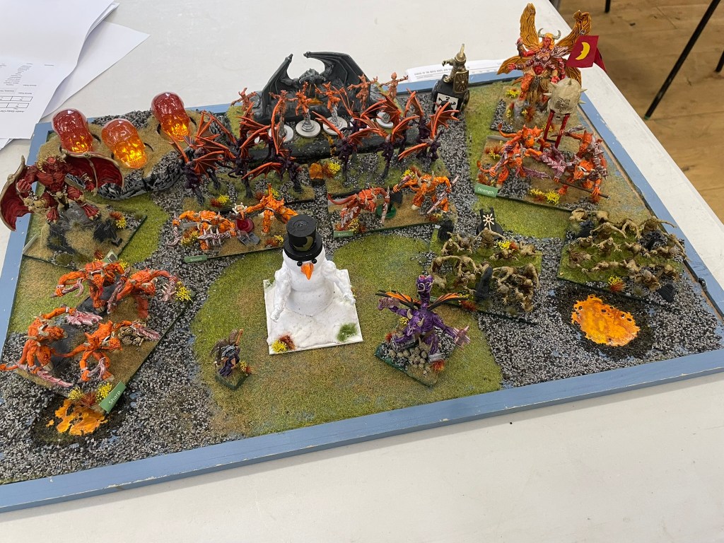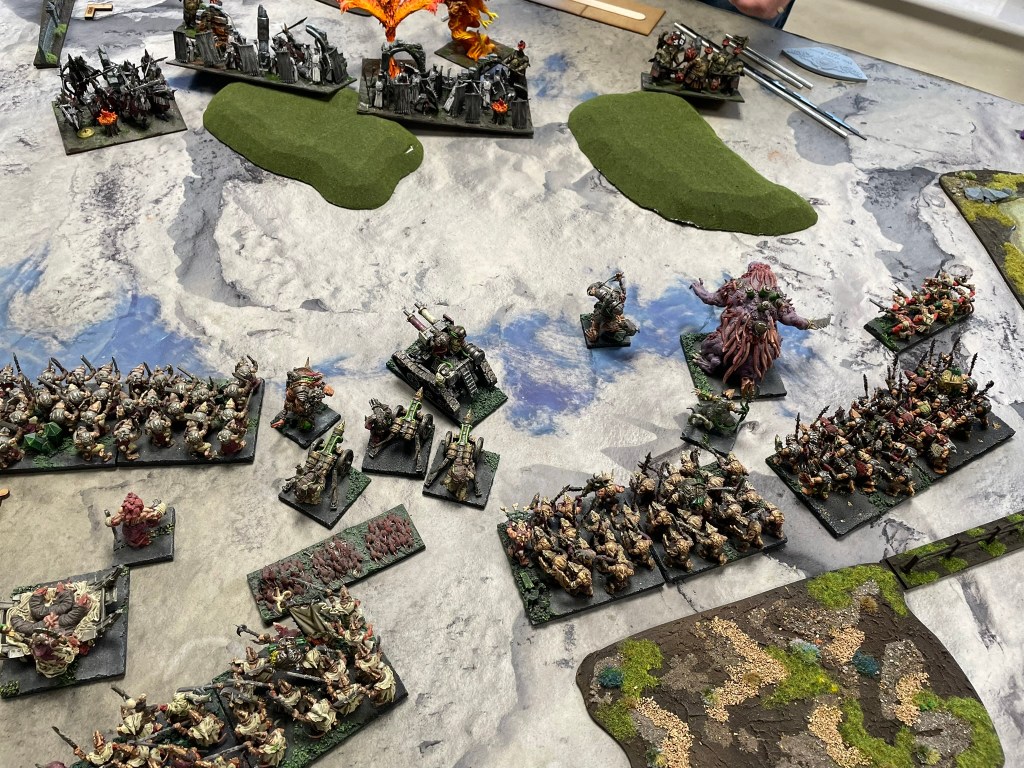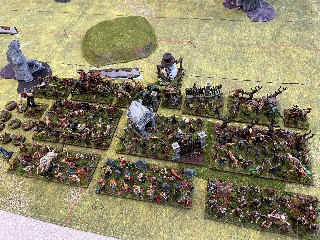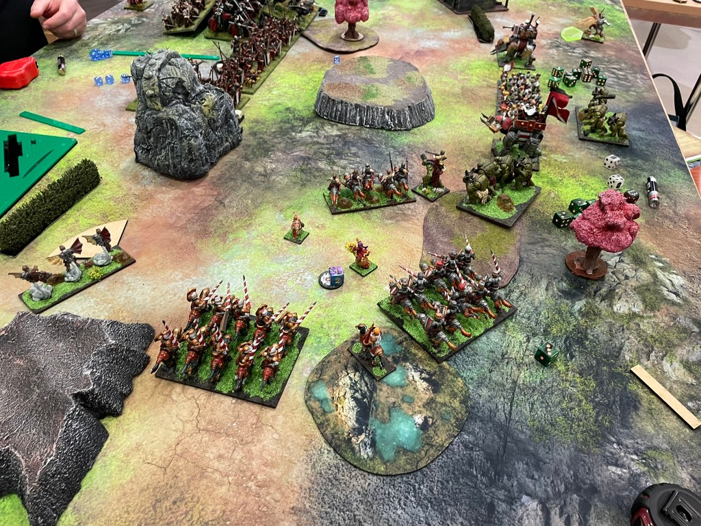 For me Christmas doesn’t really begin until I’ve popped down to Bexley Heath for three games of Kings of War with a special character and some unusual scenarios. This year the event seemed relatively calm scenario wise. The traditional first scenario was the hunt for the opponent’s Reaper, but after this, traditional scenarios straight from the book were the order of the day.